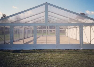 De partytenten van 10 meter breed kunnen ook met transparante dakzeilen geleverd worden, extra sfeervol met optionele dakverlichting.